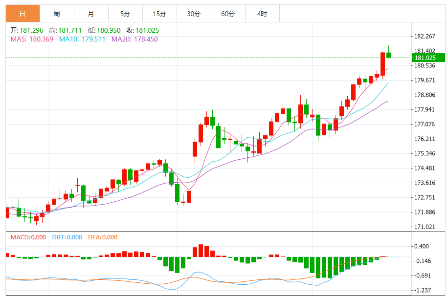 今天的预期交易范围:在180.55和181.75之间
