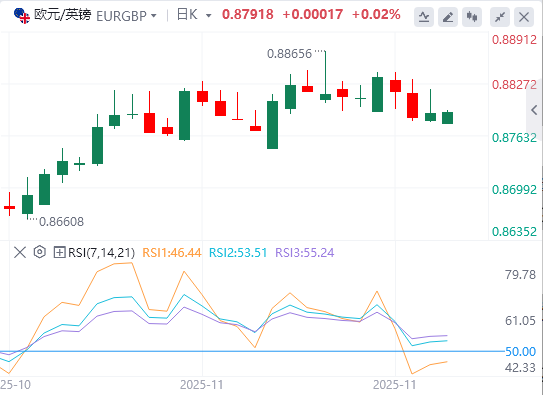 11月25日,欧元/英镑交叉在周二欧洲早盘时段维持在0.8790附近。在英国政府定于周三发布的秋季预算案前,市场可能会变得谨慎。德国第三季度(Q3)国内生产总值(GDP)的最终数据将于周二晚些时候公布。 英国财政大臣瑞秋·里夫斯预计将提高家庭所得税,以填补政府财政中220亿英镑的赤字。交易员将关注削减开支、促进经济增长和降低通胀的措施,帮助英格兰银行继续走降息的道路,该降息可能在12月及明年继续。 市场目前预计12月会议降息概率为60%,路透社调查的大多数经济学家也预计降息。英格兰银行进一步降息的前景可能会对英镑(GBP)造成抛售压力,并成为走米的顺风。 与此同时,欧洲央行(ECB)似乎接近降息周期的尾声,大多数分析师预计12月会议不会有降息,2026年进一步降息的概率也很小。这与欧洲央行关于通胀受控的信息一致。欧元区10月份通胀率徘徊在2.1%左右,基本指标与欧洲央行中期2%目标保持一致。欧洲央行的谨慎基调可能在短期内为欧元兑英镑提供一定支撑。 |