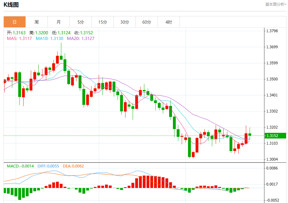 支撑位:1.3105 1.3075 1.3040