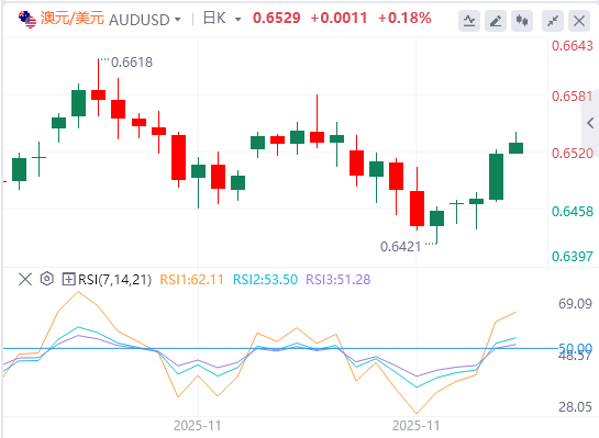 新西兰元的广泛反弹持续到今日亚洲交易日,一系列强劲的国内数据持续增强了对该国复苏的信心。第三季度强劲的零售销售表明反弹已在开始,而企业信心和活动的激增则预示着更持久的回升。这些指标共同描绘出实质动能改善的画面,而非暂时的情绪反弹。 即将卸任的新西兰储备银行行长克里斯蒂安·霍克斯比进一步强化了乐观情绪,他明确表示进一步降息的门槛非常高。霍克斯比强调,只有前景显着恶化才会促使央行从目前将利率维持到明年的预测转变为合理。他的言论强化了宽松阶段已经结束、政策可能长期搁置的印象。 澳元也表现强劲,受RBA前景预期转变的鼓舞。一些经济学家改变了看法,现在认为下一步行动实际上可能是加息而非降息。NAB表示,如果经济增长加速且劳动力市场趋紧,2026年上半年就有可能加息。还有一些人持更鹰派的观点,预计明年五月和八月都会加息。 相比之下,美元整体上保持疲软。市场坚定了美联储将在年底前再次实施风险管理削减的预期。与此同时,美国股市的风险偏好已回归,而10年期国债收益率已回落至4%以下。这些因素相互关联,随着投资者转向更高贝塔货币,进一步加剧了对美元下行的压力。 综合来看,宏观经济环境鼓励美元进一步抛售,同时支持了南半球市场,尤其是新西兰。风险敏感的外汇受益于坚实的国内基本面和更为友好的全球风险基调。 本周迄今为止,新西兰元一直位居榜首,其次是澳大利亚,然后是英镑,后者从英国秋季预算中未出现重大损失。在底部,美元表现最弱,其次是日元和加元。欧元和瑞士法郎处于中间水平。 澳元/美元技术分析 澳元/美元从0.6420的上涨今天加速上涨,盘中偏向仍处于0.6579阻力区的上行。该阻力位的决定性突破应确认从0.6706的全部跌幅已完成,形成三浪修正。随后应看到更强劲的反弹将再次测试0.6706。下行方面,跌破0.6483的小支撑将先使盘中偏向中性转为中性。 从更宏观的角度看,尚无明显迹象表明从0.8006(2021年高点)的下跌趋势已经结束。从0.5913反弹被视为一次修正动作。只要38.2%回调0.8006至0.5913,0.6713守住,展望仍将偏空。若跌破0.6413支撑,将提示0.6713的拒绝,进一步巩固这一看跌论点。尽管如此,考虑到W MACD的多头收敛条件,持续突破0.6713将是多头趋势反转的强烈信号,并为0.6941结构性阻力的确认铺平道路。 |