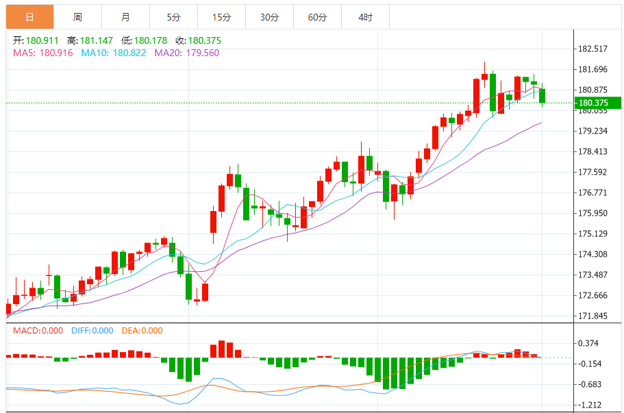 技术上,欧元/日元(EURJPY)在周五的交易中以跌破181.75的新收盘价结束,这迫使其推迟上涨行情,并通过触及180.20形成调整浪。
