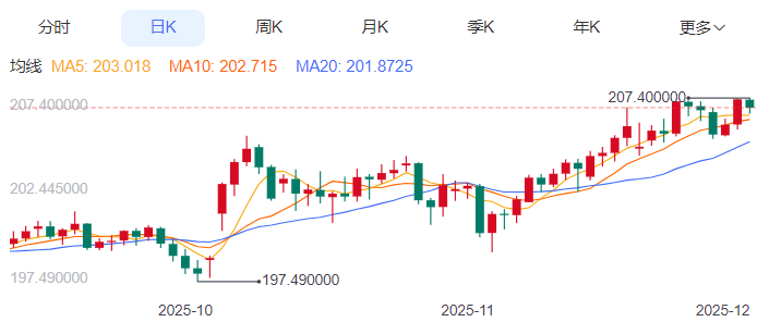 周四,英镑/日元下跌0.21%至206.88附近。