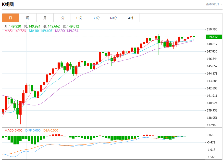 周四盘中,美元/日元报149.818,跌幅0.07%。