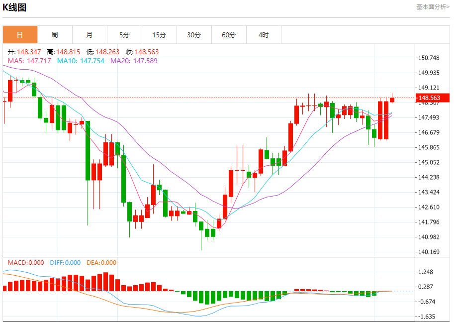 今日分析:在 148.00 之上,看涨,目标价位为 148.85 ,然后为 149.10 。
