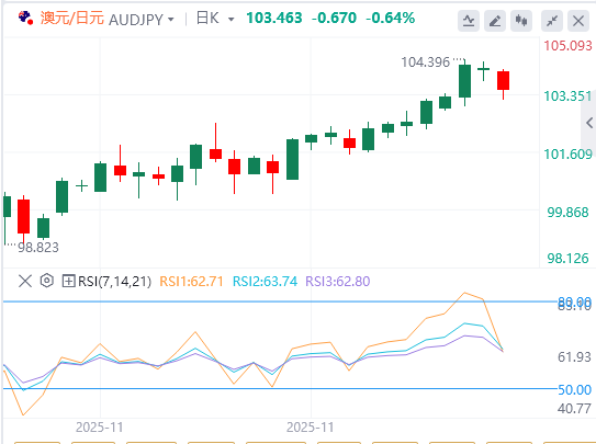 12月11日,澳元/日元在周四欧洲早盘下跌至约103.50。澳元/日元在公布混合澳大利亚就业数据后走弱。尽管如此,澳大利亚储备银行(RBA)的鹰派立场可能有助于限制澳元的跌幅。 澳大利亚统计局(ABS)周四发布的数据显示,澳大利亚11月的失业率保持在4.3%。这一数字低于市场共识的4.4%。此外,澳大利亚11月就业增长为-21.3K,而10月为4.11万(上调为42,200),而市场普遍预测为20,000。澳元因澳大利亚就业报告混合而略微下跌。 另一方面,澳大利亚央行的鹰派立场可能为澳元对日元提供一定支持。澳储银行行长米歇尔·布洛克表示,可预见的未来内降息不会出现,董事会讨论了如果通胀压力持续,明年可能加息。金融市场已预计最早将在2026年2月或6月加息。 与此同时,交易员们仍对日本扩张性财政措施和在高市政府推动再通胀和大规模支出计划以刺激疲弱经济增长的背景下感到担忧。这反过来可能对日元造成压力,成为交叉口的顺风。首相高市早苗主张支持增长的议程,市场视其为潜在财政刺激和更宽松金融环境的信号。 |