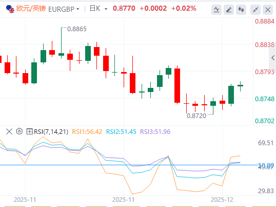 英国GDP公布再次令人失望后,英镑小幅下跌,这为一连串疲软的增长信号增添了一连串,使英镑在欧洲交易日前略显防守。预算前的疲软强化了英格兰银行在下周会议恢复降息的理由。尽管货币政策委员会内部明显分歧,但对缓慢放宽步伐的阻力似乎有限。从十月推迟到十二月,主要是由于十一月的预算案时机,而非政策前景的根本转变。 目前季度减息步伐仍是阻力最小的路径,但除此之外,前景尚不明朗。货币政策委员会内部的政策辩论极化,特别是围绕当前政策的限制性以及2026年通胀风险可能持续存在的问题。鹰派方面,副行长克莱尔·隆巴德利本周警告通胀上升风险,并暗示英格兰银行可能接近削减周期的尾声。她还质疑政策的实际限制性,暗示进一步宽松的空间可能比市场预期的更为有限。 相比之下,鸽派声音依然活跃。副行长戴夫·拉姆斯登在11月主张降息,他表示没有证据表明通胀不会如英国央行预期下降。他重申,逐步取消政策克制仍为适当,以便MPC在新数据出现后重新评估风险。 此外,美元整体表现疲软,FOMC后经济状况持续,尤其是对欧元和瑞士法郎的表现。投资者对美联储的放宽趋势似乎感到安心,这一立场推动传统股票创下新高,尽管人工智能估值的争议仍在继续。潜在的风险情绪持续限制美元任何实质反弹。 本周迄今为止,日元位居外汇表现榜底部,其次是美元,然后是加元。瑞士法郎领先,其次是欧元和新西兰,而英镑和澳元则处于中游。 欧元/英镑技术分析 欧元/英镑从0.8720的反弹今天继续上行,但仍低于0.8800阻力位。盘中偏向目前保持中性,预计还会进一步下跌。从0.8863下跌至少应是对0.8221上升趋势的调整,存在看跌反转的风险。跌破0.8720将目标0.8631集群(38.2%回撤,0.8221至0.8663,0.8618)。然而,突破0.8800将使重测0.8863时的偏向回向上。 从更宏观的角度看,从0.8221的中期底部回升仍被视为一次修正动作。上行空间应受限于61.8%回撤,回撤0.9267至0.8221,报0.8867。持续交易跌破55西移动平均线(现为0.8600)应确认此次修正反弹已完成。然而,0.8867的决定性突破表明欧元兑英镑已经在扭转0.9267(2022年高点)的整体跌幅。这应该能让0.9267回归。 |