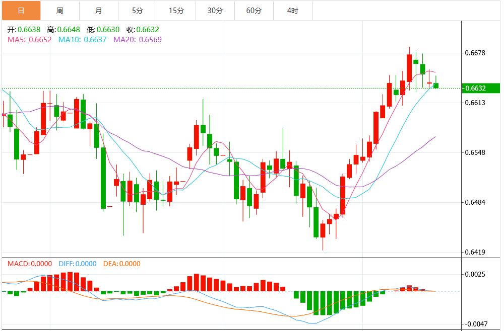 周二亚盘,澳元/美元承压下行,徘徊于0.6632附近,周一澳元/美元继续承压,澳元(AUD)小幅走低,因美元(USD)在周二即将发布的美国经济数据前出现适度反弹。 |