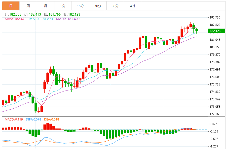 技术上,尽管欧元/日元在初始支撑位181.70以上的稳定表现面临持续的负面压力,这仍支持了重新发起多头尝试的可能性。一旦成功聚集多头动能,将有机会形成多头波段,进一步上探至182.40,然后再次面临183.20的压力。