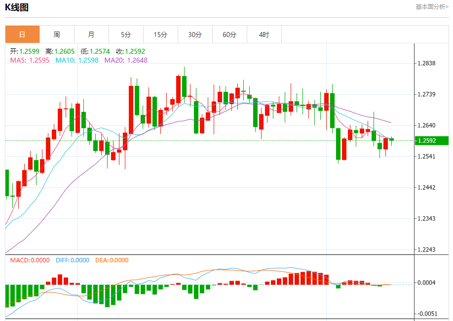 周五盘中,英镑/美元报1.2593,跌幅0.06%。