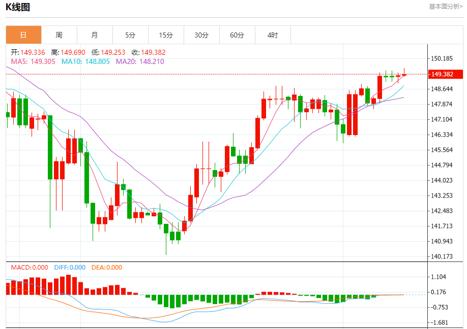 周二盘中,美元/日元报149.392,涨幅0.03%。