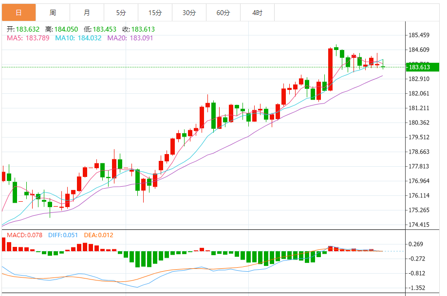 技术上,EURJPY货币对负面启动,随机指标下行接近超卖区域,以测试多头通道在183.45的支撑,尝试在其上方收盘以维持多头趋势,并开始通过拉升至184.40瞄准一些多头目标,而突破该水平将为达到下一个正面目标184.90铺平道路。