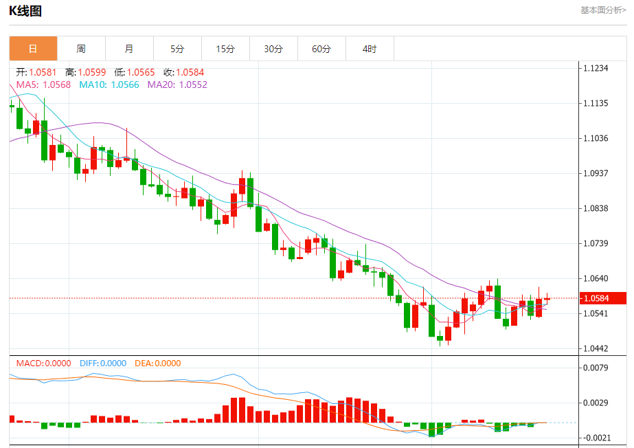 周五盘中,欧元/美元报1.0584,涨幅0.02%。