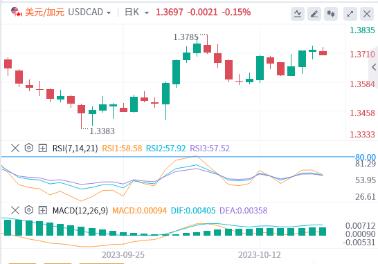 10月20日,美元/加元连续第四天保持连胜,周五欧盘徘徊在1.3697附近。随着风险情绪盛行,这两人获得了向上的支持,这可能归因于对中东冲突升级的担忧,特别是由于以色列可能对加沙进行地面入侵的准备。 ![]() |