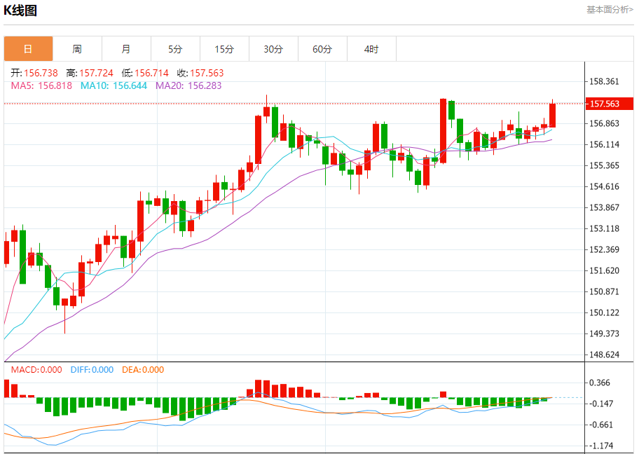 今日分析:在 157.20 之上,看涨,目标价位为 158.05 ,然后为 158.35 。
