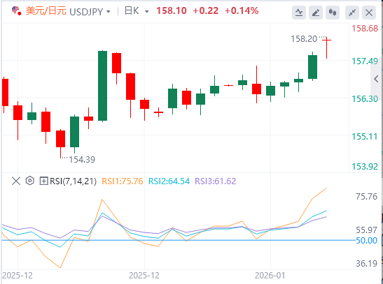 1月12日,周一欧市初盘,日元在盘中对整体走弱的美元走强后出现新一轮抛售,交易接近本周一早被触及的一年低点,进入欧洲交易日。在日中裂痕加深的背景下,有报道称日本首相高市早苗可能提前举行大选,这为日本银行下一次加息可能时机不明,增加了不确定性。这成为持续削弱日元走势的关键因素。 然而,对地缘政治紧张局势进一步升级的担忧为避险日元提供了一定支撑。另一方面,美元表现不佳,因美国美联储(Fed)独立性担忧,且已回落至周五的12月5日以来最高水平。这进一步推动了美元兑日元汇率的上限,交易员们正密切关注本周公布的美国通胀数据。尽管如此,基本面背景支持日元做空,支持日元货币对进一步升值的理由。 美国总统唐纳德·特朗普周日告诉记者,他正在考虑包括可能采取军事行动在内的多种选项,以应对伊朗的动荡。后者威胁说,如果特朗普实施干预抗议者的威胁,将针对美军基地。 这在俄乌战争加剧的背景下,抑制了投资者对风险资产的兴趣,为新一周开始时的避险日元提供了一定支持。然而,多种因素共同阻碍了交易者进行激进的日元多头押注。 上周,中国立即禁止包括部分稀土元素在内的二用途商品出口到日本。此禁令源于围绕台湾问题的外交争端,并加剧了日本制造商供应链风险,可能成为日元的逆风。 《读卖报》周五报道,日本首相高市早苗正在考虑在二月上半月提前举行国会选举。此外,日本银行下一次加息时间的不确定性也可能限制日元升值。 另一方面,美元在对美联储独立性担忧加剧之际遭遇大量抛售,回落至自周五触及的12月5日以来的最高点。这进一步推动了美元兑日元在亚洲盘下跌至157.00中段。 美联储主席杰罗姆·鲍威尔表示,司法部正威胁对他提起刑事诉讼。鲍威尔补充说,刑事指控的威胁是美联储基于其对公众利益的最佳评估而产生的,而非遵循总统的偏好。 在经济数据方面,美国劳工统计局(BLS)周五报告称,12月非农就业人数增加了5万,低于预期的6万和11月的5.6万(由6.4万修正)。然而,失业率从11月的4.6%降至4.4%。 这导致美联储在1月28日下一次政策会议上降息的可能性发生了转变,尽管未能打动美元多头市场。尽管如此,美联储仍预计今年将进一步降低借贷成本,这与日本银行鹰派押注形成显着分歧。 事实上,日本央行行长上田一夫上周重申,如果经济和价格发展符合预期,央行将继续加息,为进一步紧缩政策留下了空间。这反过来限制了美元兑日元的上行空间。 交易员们现在期待周二和周三分别公布最新的美国通胀数据——消费者价格指数(CPI)和生产者物价指数(PPI)。这将影响美元价格动态,并为美元兑日元汇率注入新动力。 美元/日元技术分析 4小时图上的200期简单移动平均线(SMA)微微上高至156.14,美元兑日元维持上方以保持多头偏向。作为较慢的趋势指标,上升的移动平均线凸显了潜在需求。移动平均收敛背离线(MACD)位于信号线之上且高于零,直方图保持正值,表明上行动能坚实。相对强弱指数(RSI)显示75(超买),显示当前状况被拉长,可能限制即时涨幅。 价格仍受上升的200期均线支撑,若持续守住该均线,买家将保持控制。MACD的正向对齐强化了看涨基调。当RSI高于70时,任何下跌都可能成为暂停,以调整超买读数,然后趋势恢复。若未能维持均线基底,将为修正回调创造空间。 |