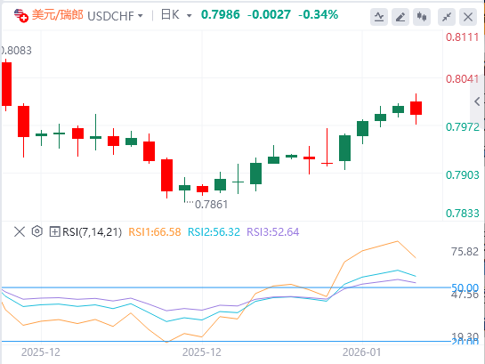 1月12日,周一欧市初盘,美元/瑞郎终结了四天连胜,徘徊在0.7990附近。随着地缘政治紧张局势加剧,瑞士法郎(CHF)获得避险需求支持,货币对走势。美国总统唐纳德·特朗普警告德黑兰不要对示威者使用武力,并暗示如果镇压加剧可能采取行动,而伊朗官员则警告不要采取任何美国或以色列的干预。 与此同时,以英国和德国为首的欧洲国家正考虑增加在格陵兰的军事存在,以加强北极安全。德国可能提议联合北约任务,英国首相基尔·斯塔默敦促盟友加强在高北地区的努力,此时美国总统唐纳德·特朗普重新主张美国拥有格陵兰。 随着投资者评估瑞士国家银行(SNB)的政策前景,瑞士法郎可能进一步上涨。2025年12月,瑞士通胀率同比上升至0.1%,这是自7月以来的首次上升,但仍接近央行0–2%目标区间的下限。这进一步强化了人们对瑞士国家银行未来会议可能维持0%利率的预期,预计通胀将随着经济复苏逐步上升。 随着美元(USD)走弱,美元兑瑞郎汇率贬值,可能引发了美联储的担忧。联邦检察官已对美联储主席杰罗姆·鲍威尔展开刑事调查,涉及中央银行对华盛顿总部的翻新,以及鲍威尔是否对国会关于该项目范围撒谎,《纽约时报》周日报道。 美元下跌是基于近期就业报告显示12月就业增长低于预期,进一步可能下调美国联邦利率的可能性。美国非农就业人数(NFP)12月增加了5万,低于11月的5.6万(修正为6.4万),且低于市场预期的6万。然而,失业率从11月的4.6%降至12月的4.4%。 |