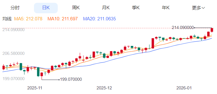 今天的预期交易范围:在212.70和214.90之间