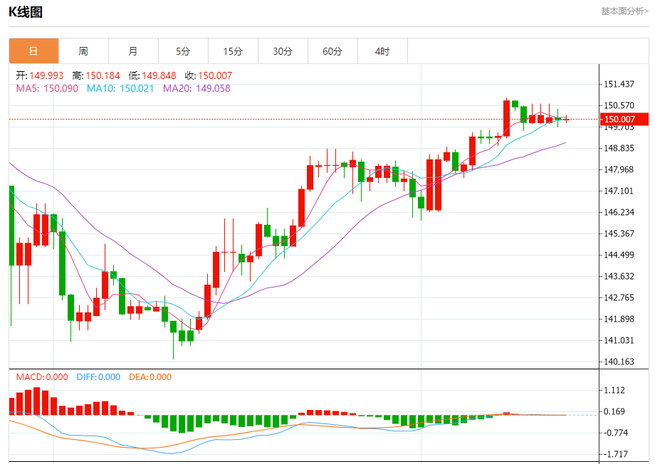 周三盘中,美元/日元报150.018,涨幅0.00%。