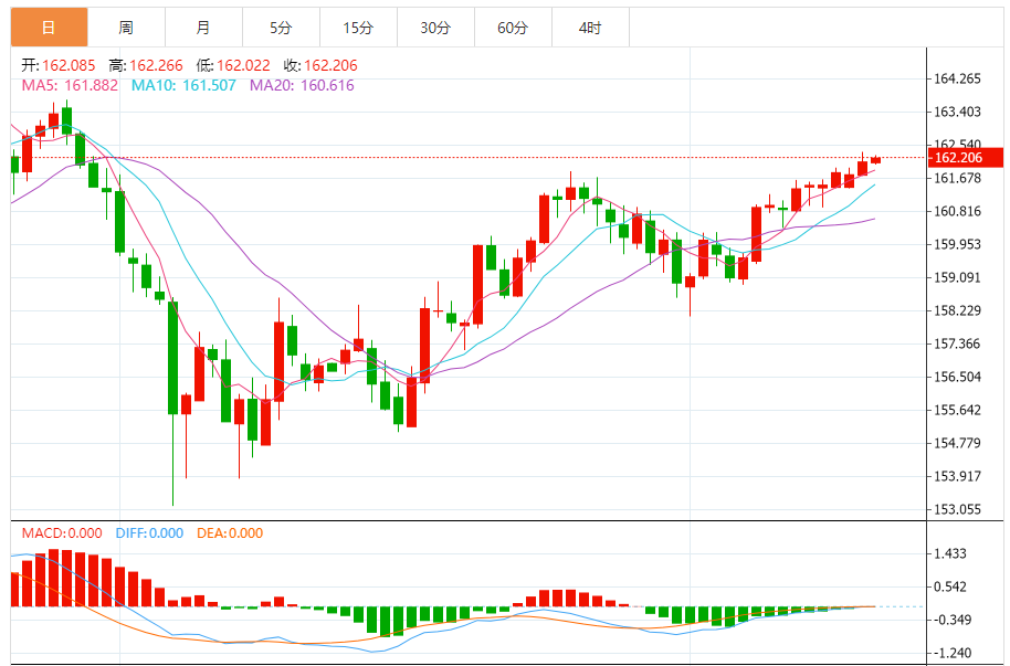 技术上,欧元兑日元昨日形成了新的看涨涨势,触及162.35点,实现了一些积极目标。162。35点形成了盘中障碍,阻碍了恢复上涨的努力,提供了图表上显示的暂时横向波动。
