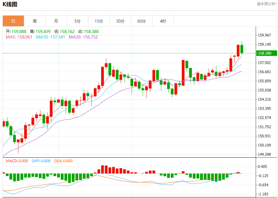 今日分析:看涨,当 158.83 为支撑位,目标定在159.77。