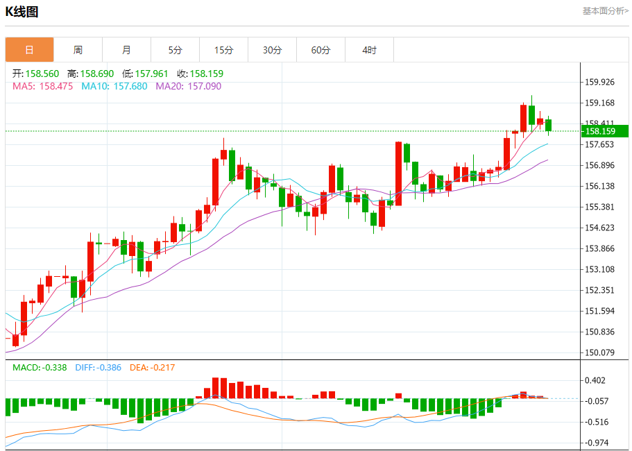 支撑位:158.00 157.65 157.35