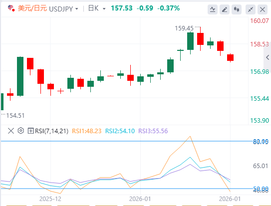 1月19日,日元周一连续第二天对整体走弱的美元走强,并在亚洲交易日攀升至一周多的高位。日本财务大臣片山皐月周五威胁采取大胆行动,并警告可能采取干预措施以应对本币走弱,而本币反过来被视为支撑日元的支撑。此外,日本银行(BoJ)可能提前加息的前景,也成为惠及日元的另一个因素。 与此同时,美国总统唐纳德·特朗普周六誓言对八个反对其夺格陵兰计划的欧洲国家征收关税,重新引发贸易战担忧。此举伴随着持续的地缘政治不确定性,抑制了投资者对风险资产的兴趣,进一步推动了避险日元。另一方面,美元从12月9日以来的最高点回落,并促成美元兑日元从上周三触及的18个月高点回落。 日本财务大臣片山皐月周五表示,所有选项,包括与美国的直接协调干预,都在考虑以应对日元近期走弱。 路透社援引消息人士称,日本央行内部一些决策者认为,最早在四月,市场预期中可能提前加息,进一步支持日元。 美国总统唐纳德·特朗普威胁从2月1日起对八个欧洲国家的商品征收10%关税,直到美国获准购买格陵兰为止,这引发了新一轮的风险规避贸易浪潮。 欧盟大使们周日达成了一项广泛协议,将加大力度劝阻特朗普对盟友征收税费的努力,同时准备如果关税继续征收的报复措施。 此外,长期的俄乌战争带来的地缘政治风险以及对美国可能对伊朗军事打击的持续担忧,都有利于日元在新一周开始时的安全避风港地位。 随着新的贸易战担忧引发美国资产信心危机,美元遭遇大量抛售,抵消了美国美联储今年年底前可能再降两次息的押注减少。 有报道称,日本首相高市早苗计划在2月上半月解散议会并提前举行议会选举,以争取公众支持其财政扩张政策。 鉴于高市人气高企,获胜将巩固她联合政府的议会多数席位,巩固她推进支出计划的权威,这对日元多头持谨慎态度。 交易者也可以选择等待周四公布的美国个人消费支出(PCE)价格指数和周五日本央行关键的货币政策决定,再进行新的方向性押注。 美元/日元技术分析 美元兑日元在斐波那契回撤位61.8%附近获得不错支撑,该位是近期从月度高点上游的表现。若若继续突破50%回撤位,约157.80区域,可能为进一步上涨铺平道路,但更强劲的反弹仍需进一步确认动能。 移动平均线收敛背离(MACD)徘徊在零线以下,读数坚定,接近-0.01,暗示看跌压力正在减弱。相对强弱指数(RSI)为43(中性-看跌),在此前超卖下跌后趋于稳定。 与此同时,美元兑日元汇率跌破趋于平坦的100小时简单移动平均线(SMA),约在158.55区间,预计该区域将限制反弹。如果收盘回升至该均线之上,短期趋势将进一步上升。 |