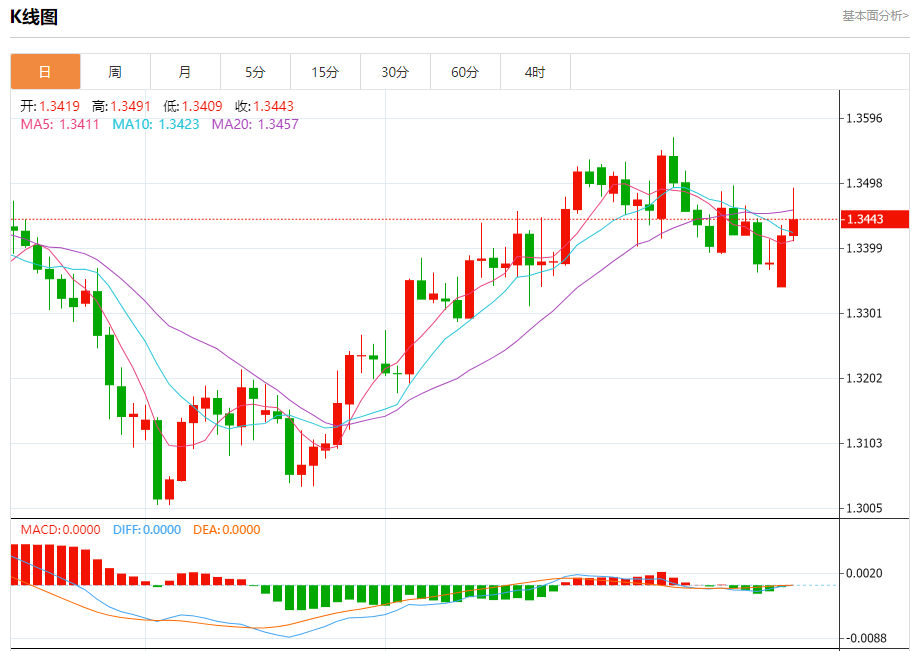 支撑位:1.3430 1.3410 1.3380