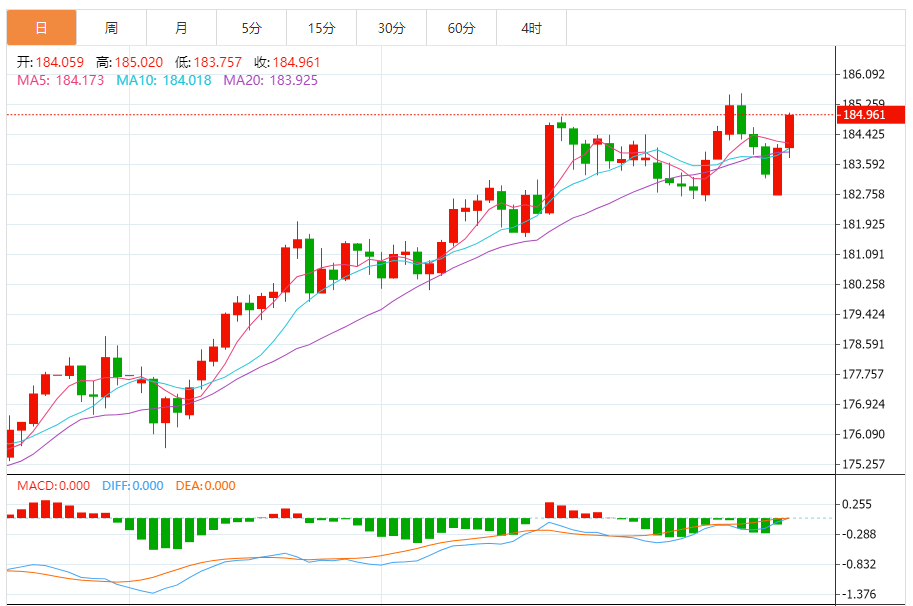 今天的预期交易范围:在183.90和184.85之间