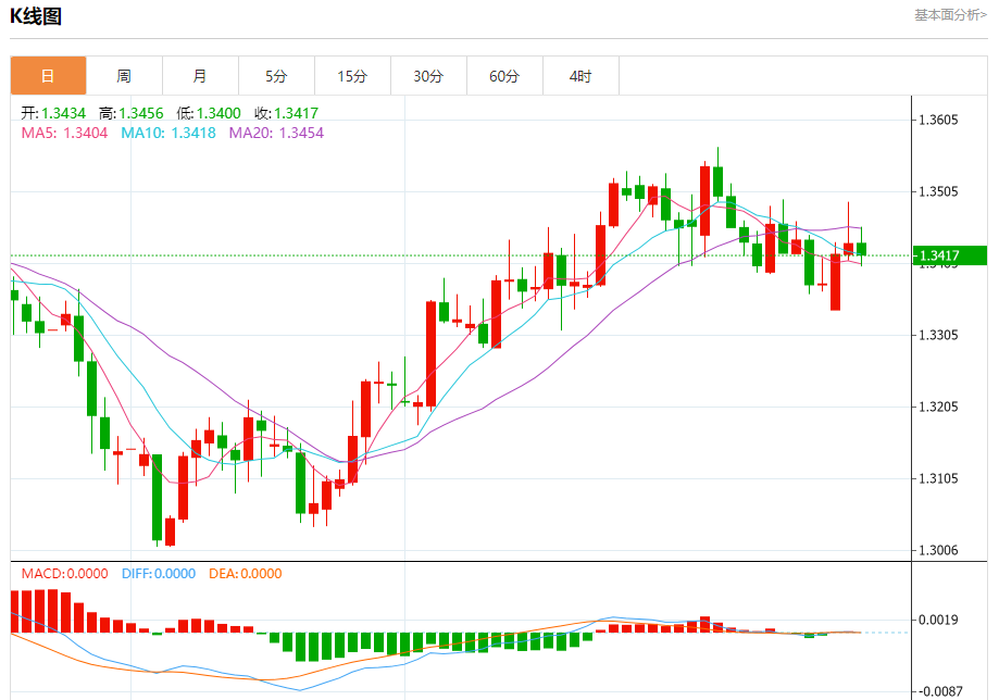 周三盘中,英镑/美元报1.3424,跌幅0.07%。