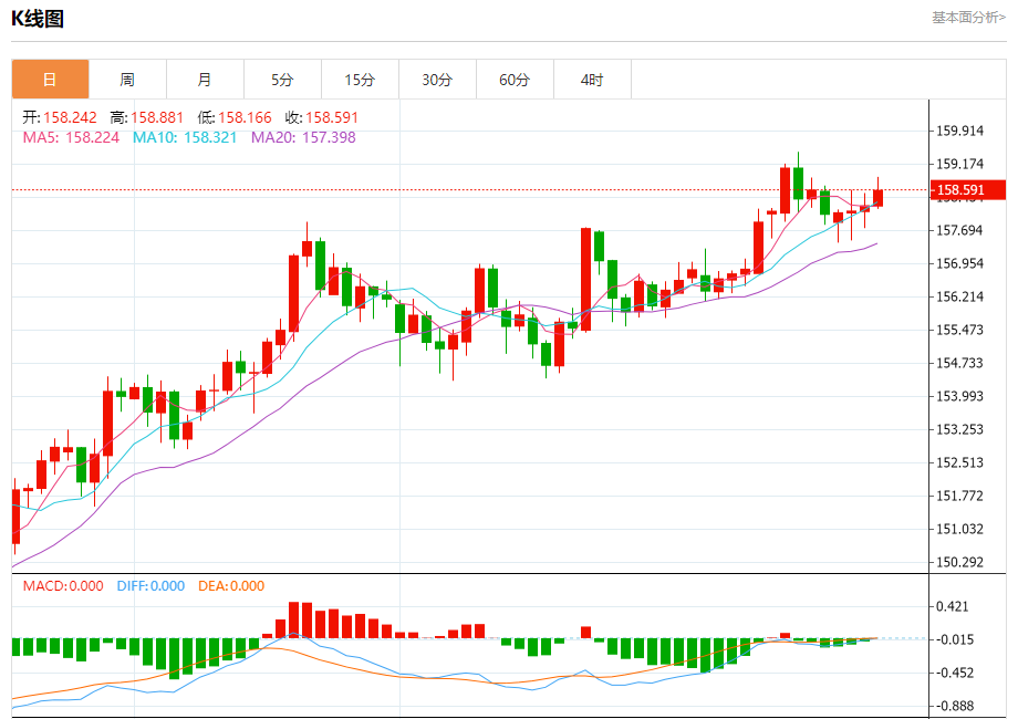 技术点评:在158.25之上,为多头信号,向上的目标位为159.10。