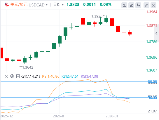 1月22日,周四欧市初盘,美元/加元连续第四个交易日处于负区间,徘徊在1.3830附近。随着与大宗商品挂钩的加拿大元(CAD)因油价上涨而走强,该货币对走弱,反映出加拿大作为美国最大原油出口国的角色。 西德克萨斯中级原油(WTI)在连续四天上涨后保持原位,截至撰写时徘徊在每桶60.50美元左右。油价上涨的潜力可能会受到限制,因为供应风险被供应过剩的担忧所抵消,国际能源署(IEA)重申,尽管需求增长略有上调,今年全球供应将大幅超过需求。行业数据还显示,上周美国(US)原油库存增加了约300万桶。 随着地缘政治紧张局势缓解,油价上涨,降低了能源需求的下行风险。美国总统唐纳德·特朗普周三排除了使用军事力量夺取格陵兰的可能性,并表示将停止对反对其夺取格陵兰努力的欧洲国家商品征收关税。 美欧地缘政治紧张局势缓解支撑了美元(USD),帮助限制了美元兑加元的跌幅。交易员们期待每周的初次失业救济申请、年化国内生产总值和个人消费支出(PCE)通胀数据,以期美国经济出现新的信号。 美联储官员表示,在没有更明确证据表明通胀正可持续地向2%目标移动的情况下,缓和政策的紧迫性有限,尽管市场仍预计今年晚些时候将降息50个基点。 |