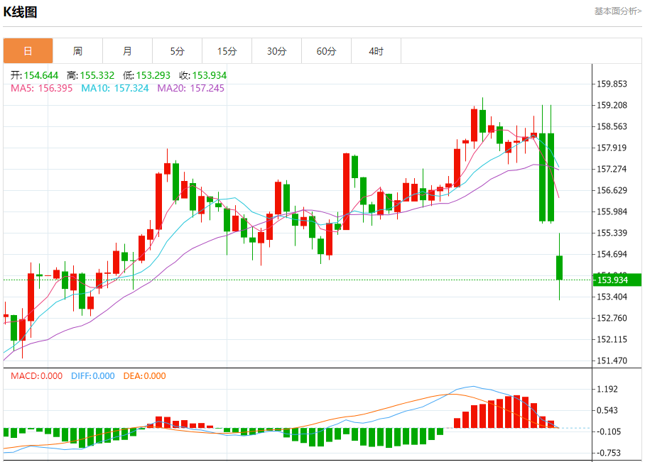 阻力位:156.80 156.20 155.35