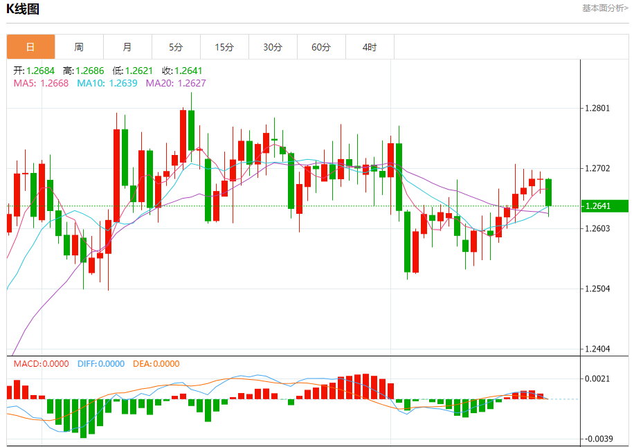 周三盘中,英镑/美元报1.2642,跌幅0.34%。