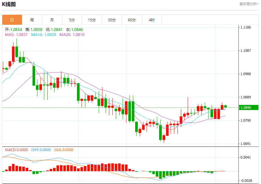 周二盘中,欧元/美元报1.0847,跌幅0.08%。
