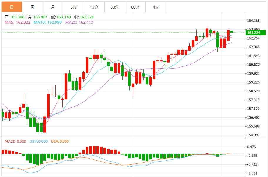 今天的预期交易范围:在163.00和163.85之间