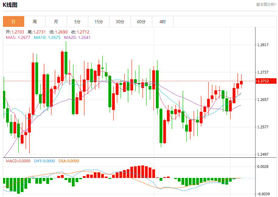 周三盘中,英镑/美元报1.2712,涨幅0.05%。