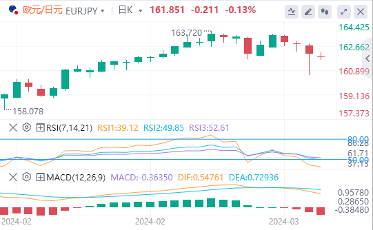 在全球风险偏好飙升的情况下,美元继续成为本周表现最弱的货币。包括标准普尔500指数、纳斯达克指数、DAX指数和CAC在内的全球主要股指隔夜创下历史新高。这股乐观情绪已经无缝过渡到今天的亚洲时段。投资者对央行降息预期的最新调整消化得相当好。虽然比最初想象的要晚一些,但美联储和欧洲央行有望在6月首次降息。现在的焦点将转向今天美国非农就业报告,因此进一步巩固了对美联储的预期。 澳元超越日元,成为本周迄今为止表现最好的货币。中国广东能源公司(GuangdongEnergy)计划今年从澳大利亚进口8000万吨煤炭的消息提振了澳大利亚。此举标志着澳大利亚和中国之间的贸易水平恢复到制裁前的水平,为澳元提供了显着的提振。与此同时,尽管回吐了早些时候的大部分涨幅,但日元目前在强势方面排名第二,这得益于对日本央行本月晚些时候加息的押注增加。 相反,瑞士法郎的表现仅略高于美元,加元紧随其后,因为市场参与者正在等待加拿大就业数据的进一步方向。欧元和英镑处于相对中立的位置,英镑略有优势。 欧元/日元技术分析 从技术上讲,日元兑除美元外的大多数货币都回吐了大幅上涨。例如,欧元/日元在跌至160.54后强劲反弹。目前的发展表明,从163.70下跌只是近期的修正性回调。在55DEMA(目前为162.51)上方的持续交易将表明这一修正已经完成,并带来更强劲的反弹至163.70。如果以这种方式实现,日元的交叉反转可能有助于美元/日元从140.25的38.2%回撤位反弹至150.87的146.81。让我们看看它是如何发挥作用的。 |