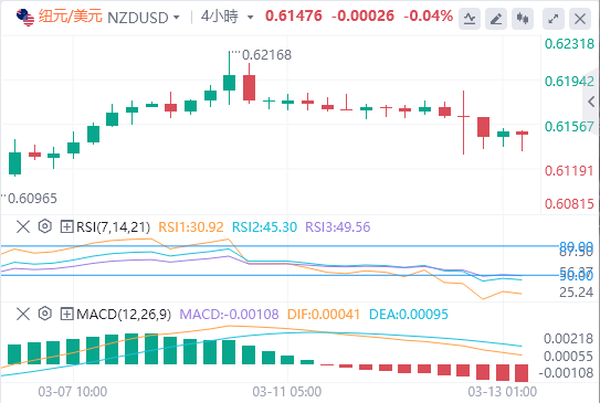 3月13日,周三亚市早盘,纽元/美元徘徊在0.6100附近。美元反弹和美国国债收益率上升给纽元/美元带来了一定的抛售压力。在周三经济数据淡静的情况下,纽元/美元仍受美元价格波动和更广泛风险情绪的影响。 |