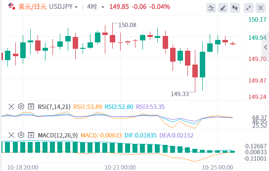 美元/日元继续震荡於150.00主要关卡附近,美元/日元10月初触及150.16之后未能实现明显突破,目前已陷入紧张的持仓格局。 日本央行(BoJ)继续担心日本通膨今后会回到通货紧缩的水平,消费者和投资者继续呼吁日本央行采取措施保护消费者免受目前正在蚕食公民购买力的通膨的影响。 美国周二公布的采购经理人指数(PMI)数据完全好於预期,使美元保持强劲升势,因为美国经济成长指标持续走强。美国采购经理人指数(PMI)高於预期,录得50.0,高於前值49.8。 日元交易商将关注周五早盘公布的日本东京消费者物价指数通膨数据,预计东京核心通膨(扣除食品价格波动因素的总体通膨率)今年10月将稳定在2.5%。 9月东京整体通膨年率为2.8%,日本央行将寻求通膨不会跌破央行2%最低目标的证据。 美元/日元技术展望 随着美元/日元维持在150.00下方,日线技术指标开始下行突破,日线蜡烛图美元/日元快速波动的过程中连续发出见顶旋转蜡烛讯号。 长期来看,美元/日元买盘仍然非常强劲,美元/日元正测试历史高点,美元/日元已自2023年1月创下的低点127.22上涨了近18%。 ![]() |