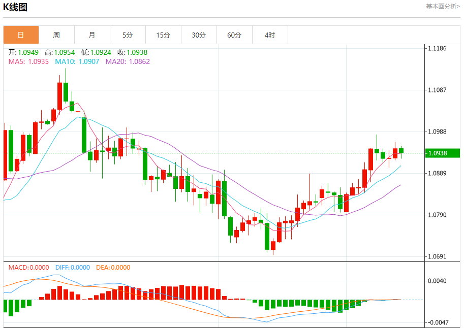 周四盘中,欧元/美元报1.0939,跌幅0.09%。