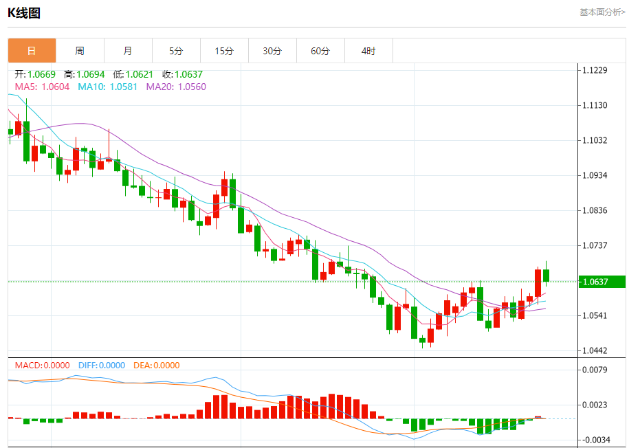 周二盘中,欧元/美元报1.0637,跌幅0.31%。