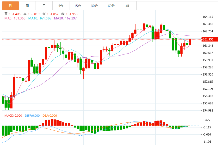 今天的预期交易范围:在161.85和160.85之间