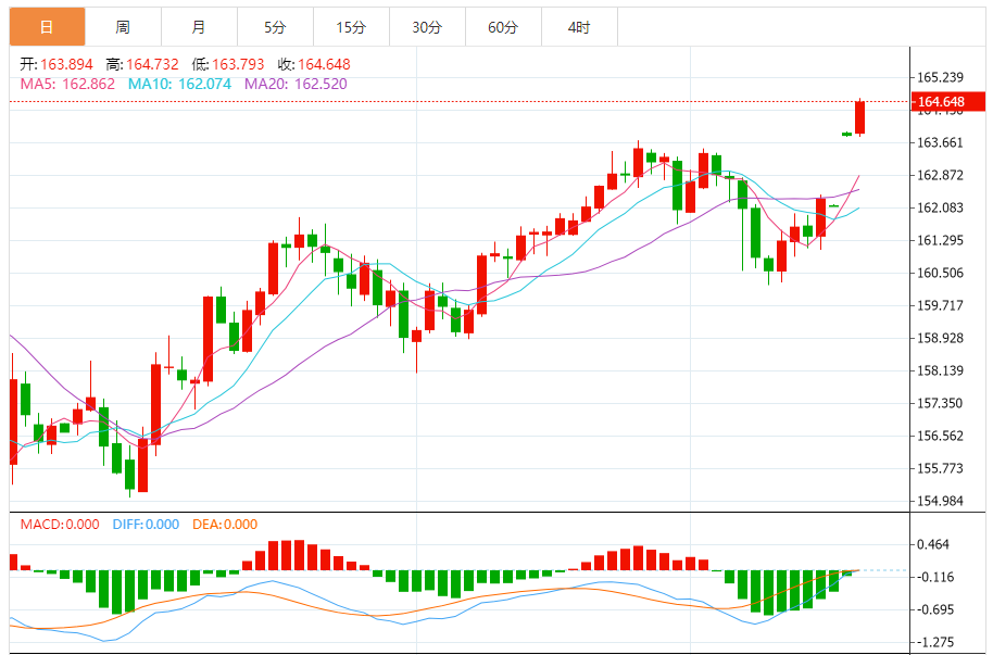 今天的预期交易区间:在164.10和164.90之间