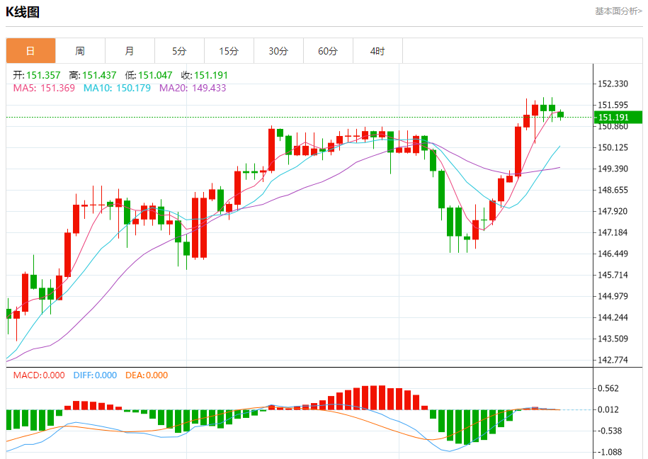 周一盘中,美元/日元报151.199,跌幅0.14%。