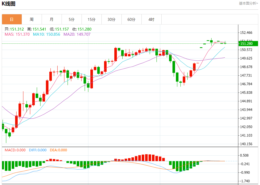 技术点评:151.20附近形成了一个支撑的底部,将带来走势短期内的稳定。