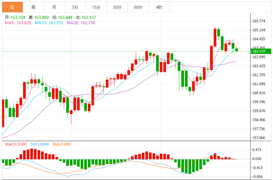 今天的预期交易范围:在163.65到164.20之间。