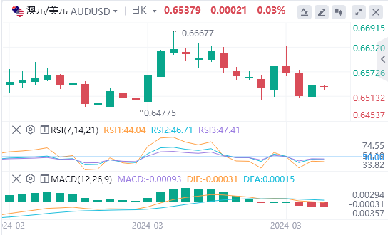 3月26日,周二亚市盘中,澳元/美元连续第二个交易日上涨。美元的下跌有助于支撑澳元/美元货币对。然而,在澳大利亚西太平洋银行消费者信心数据发布后,澳元面临轻微的下行压力,该数据从2月份的86.0下降到2024年3月的84.4,从20个月的高点回落1.8%。 在澳大利亚消费者信心下降的推动下,澳大利亚股市从降息预期中获得支撑,推动澳元走强。尽管隔夜华尔街小幅疲软,但ASX200指数延续了连胜势头。预计投资者将密切关注周三公布的澳大利亚月度消费者物价指数(CPI)数据。 美元指数续第二天下跌,主要归因于美国国债收益率下降。市场情绪倾向于美联储(Fed)开始宽松周期的预期,猜测可能在6月开始。 澳元/美元技术分析 澳元周二交投于0.6550附近。如果超过该水平,则可能会在主要障碍0.6550附近遇到直接阻力,同时结合9天指数移动平均线(EMA)0.6554。成功突破该水平可能会推动澳元/美元货币对测试38.2%斐波那契回撤位0.6565。不利的一面是,如果价格回落,一个重要的支撑位位于心理关口0.6500,然后是3月份的低点0.6477。 |
