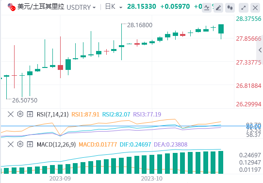 XM外汇官网:外汇市场最新行情走势展望:美元/土耳其里拉升至28.15附近的历史新高2023-10-26 20:06:55