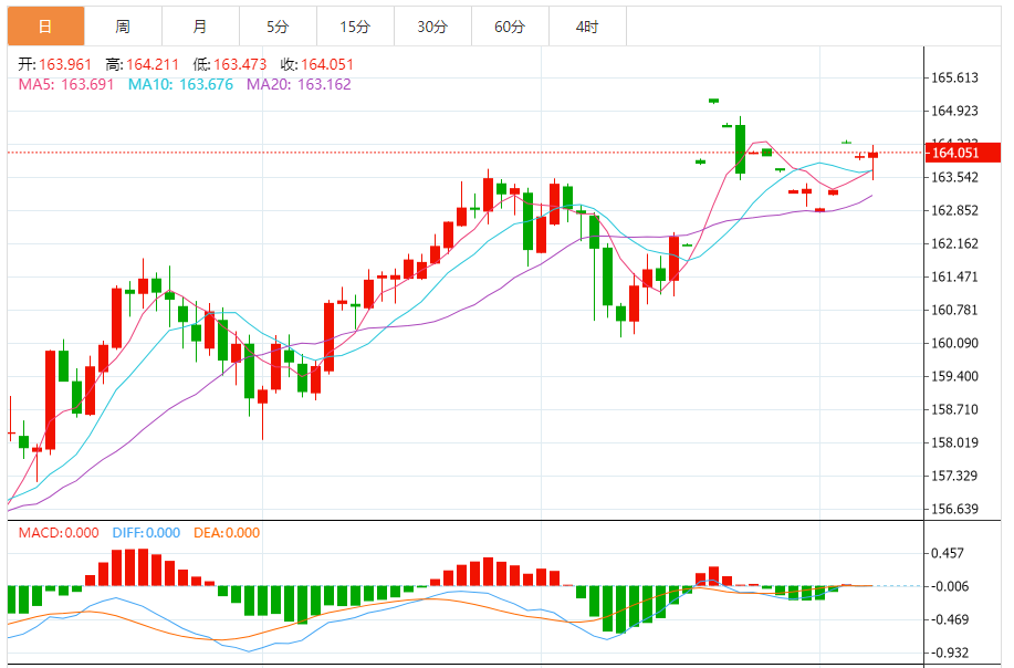 预期交易范围:在164.30支撑和163.30阻力之间。