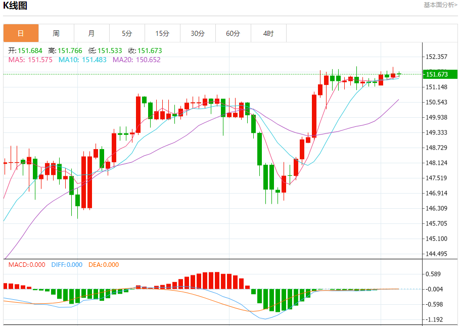 周四盘中,美元/日元报151.684,跌幅0.01%。